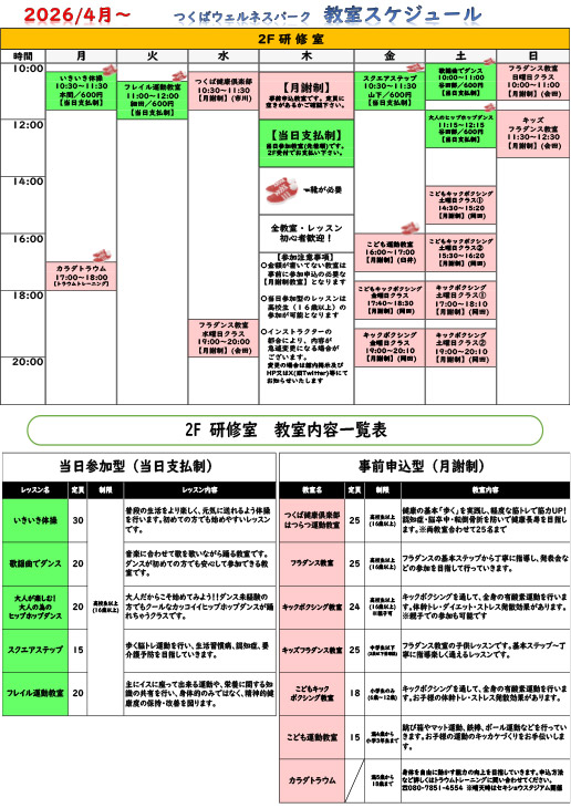 つくば健康倶楽部教室 3,300円 ※専用歩数計6,280円が初回に必要です はつらつ運動教室 2,200円 |