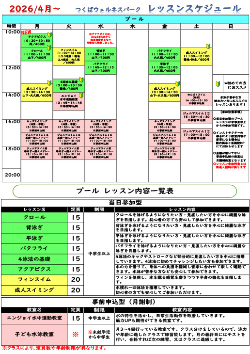 ※プールレッスンは、レッスン料の他に施設利用料が必要となります。